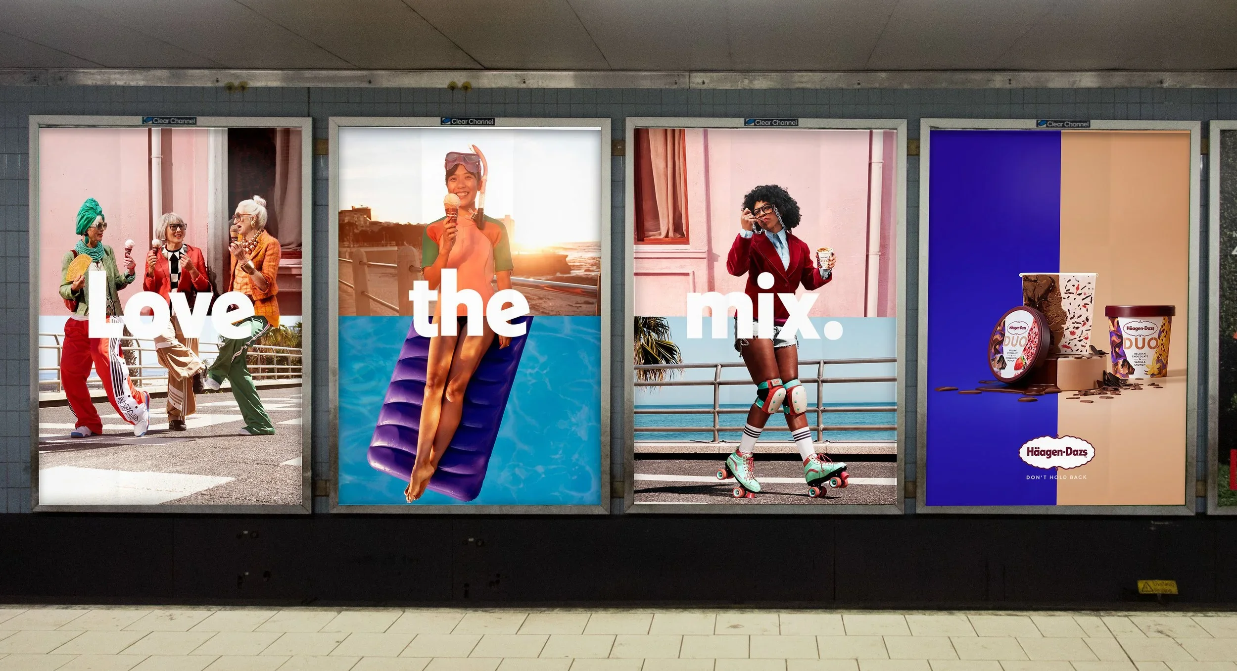 The campaign introduces two new ranges, Duo and Cocktail Collection, in which contrasting flavors are split into the same pint. This idea is visually mirrored by a split-screen device that runs like a red thread across all brand assets, including film, print, OOH, retail, and POS.